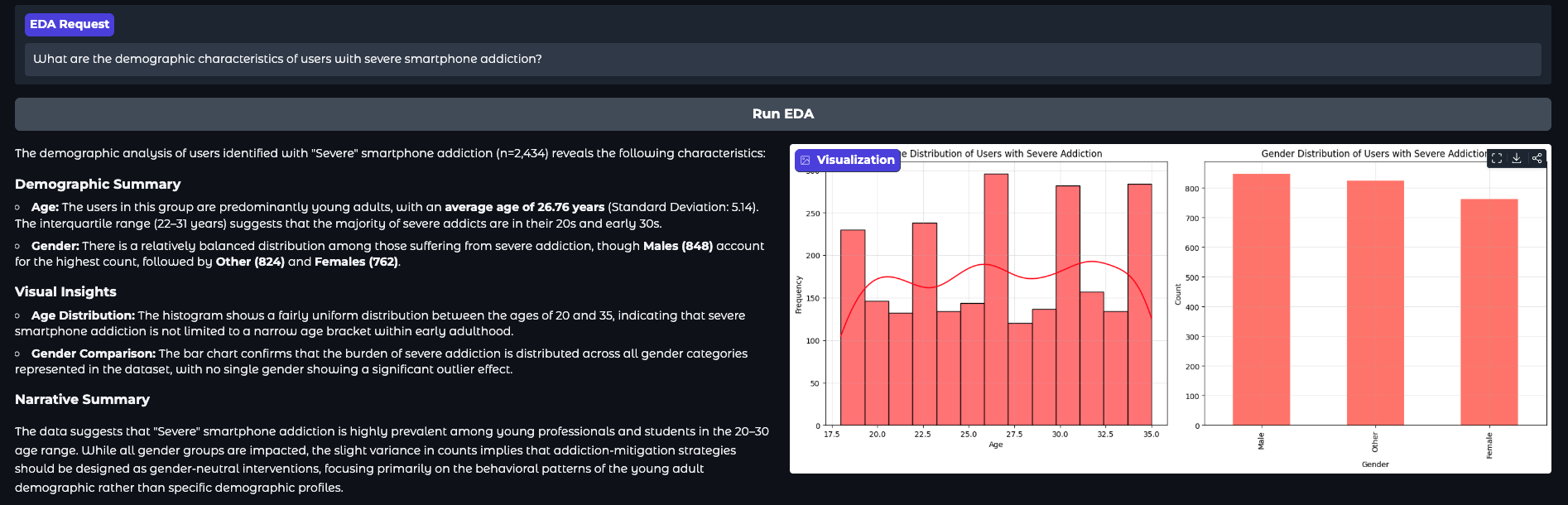 - EDA Agent: Writes and executes dynamic Python code (